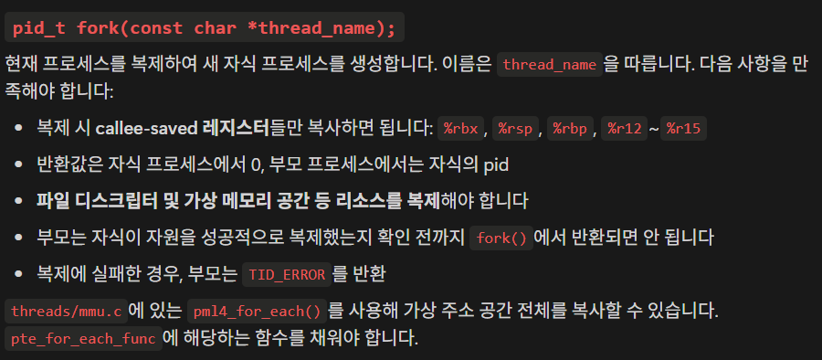 과제 설명서에서 fork는 어떻게 구현해두라고 되어있는지 확인해보자