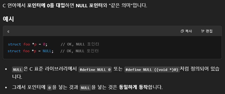 fd 테이블을 검사할 때 해당 fd가 비어있는지 확인하려면 NULL인지 아닌지 체크하게 되는데, 이때 해당 fd에 0이 들어가 있으면