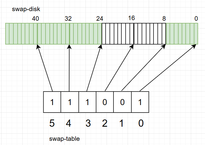 pintos에서 swap-disk는 이미 disk라는 구조체를 사용하라고 뼈대가 만들어져 있다. 그러면 swap-table은? 여러 자료구조를 사용할 수 있겠지만, bitmap이라는 자료구조가 가장 좋아보인다.