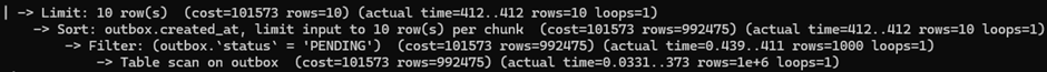 CREATE INDEX idx_status_createdat ON outbox (status, created_at);