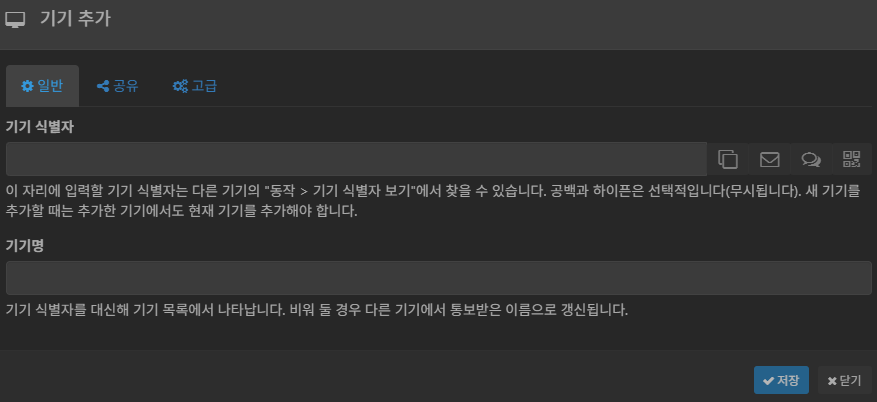 여기서 기기 식별자에 복사해둔 기기 ID를 집어넣자