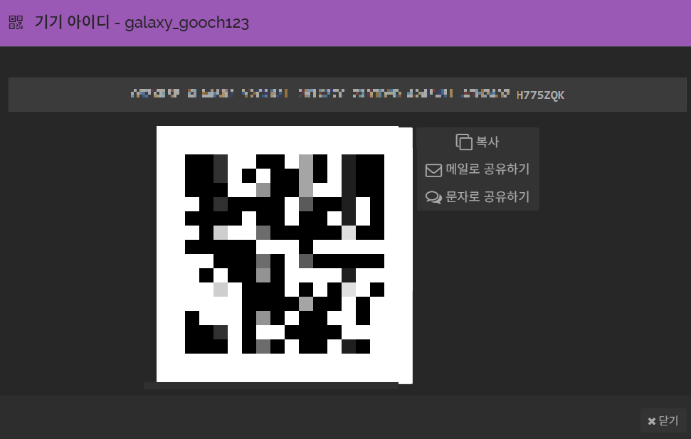 중간에 QR 코드가 나오고 상단에는 기기 ID가 나온다
